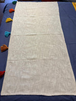 Beige Linen Sofa Throw with Multicolour Tassel Accents