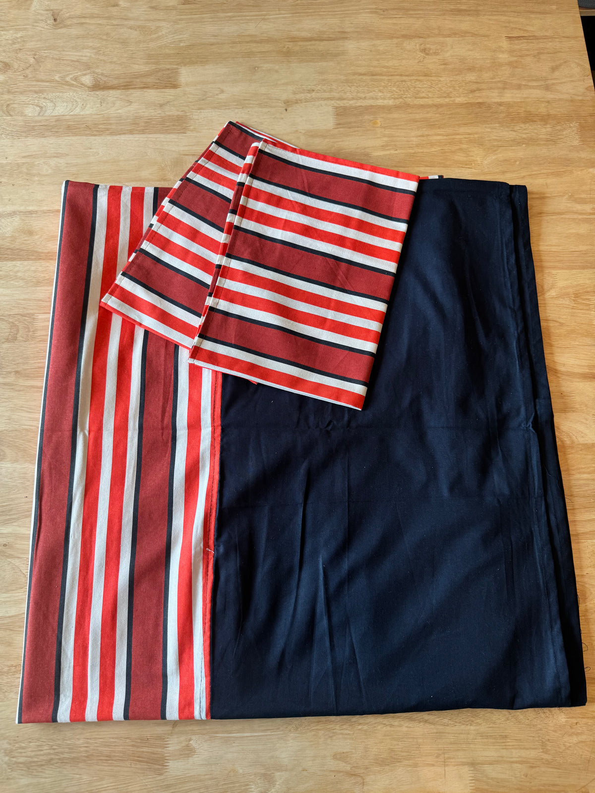 Red/White/Dark Blue Striped Pattern - King Size Border Bed Sheet Set