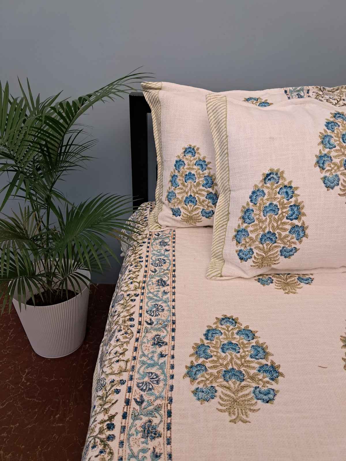 Elevate your space with the timeless beauty of the Sapphire Blossom Artisan Jute Bedcover — a perfect fusion of tradition and elegance.